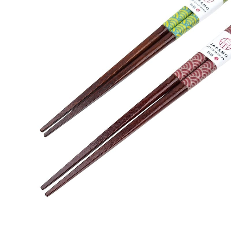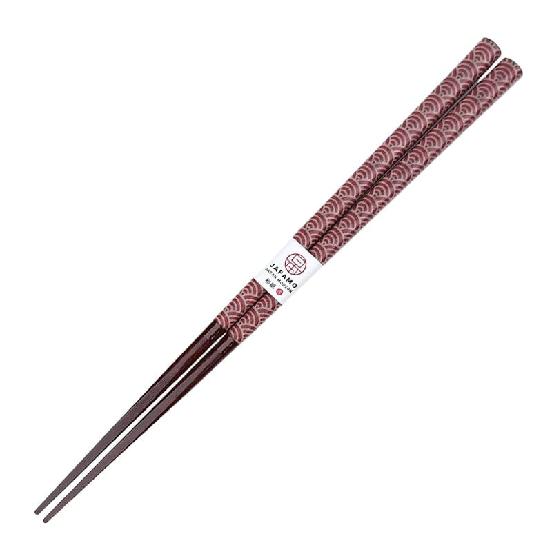 Japońskie pałeczki z czerwonym uchwytem seigaiha - 23 cm