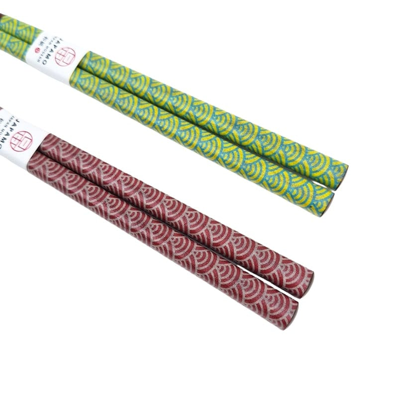 Te japońskie pałeczki z tradycyjnym motywem Seigaiha, symbolem dobrobytu i spokoju, dodadzą elegancji Twoim posiłkom. Ich czerwony odcień przywołuje witalność i energię, jednocześnie podkreślając wyrafinowaną sztukę Japonii. Idealne do delektowania się japońskimi potrawami w dobrym stylu.