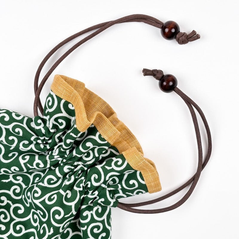 Wszechstronna, ta duża japońska torba ze skórzanym sznurkiem może być używana do przechowywania materiałów dziewiarskich, produktów kosmetycznych ... Praktyczny, można go wsunąć do walizki, aby przechowywać bieliznę, stroje kąpielowe itp. Elegancka, idealna jako mała torebka do kimona, yukaty lub zachodniego stroju. Jej gruba bawełniana tkanina jest podszyta dla zwiększenia wytrzymałości i trwałości.