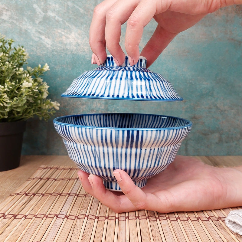 Donburi to tradycyjne danie na bazie ryżu z różnymi dodatkami. W tej dużej japońskiej misce z pokrywką można również podać danie z makaronem lub zupę. Świetny pomysł na prezent.