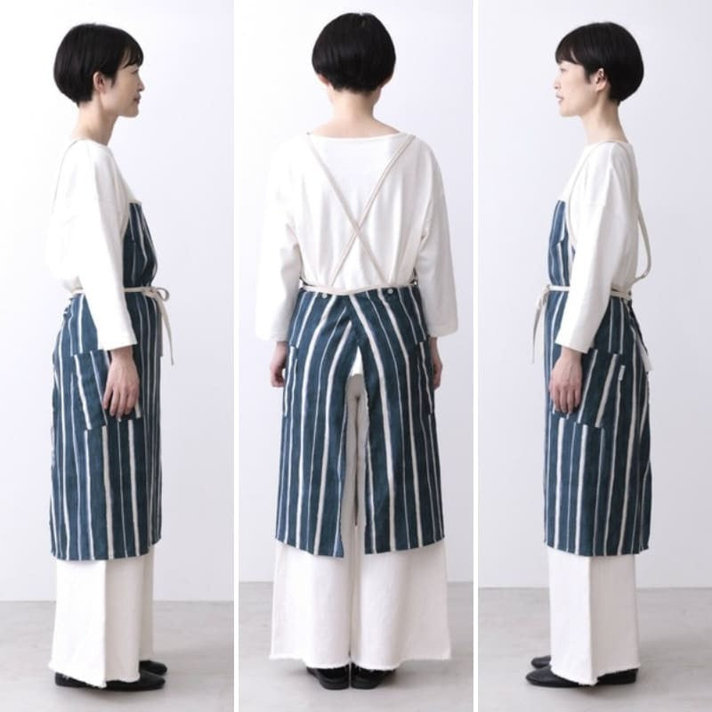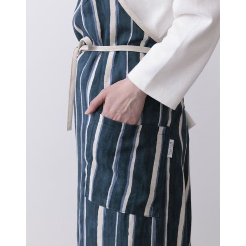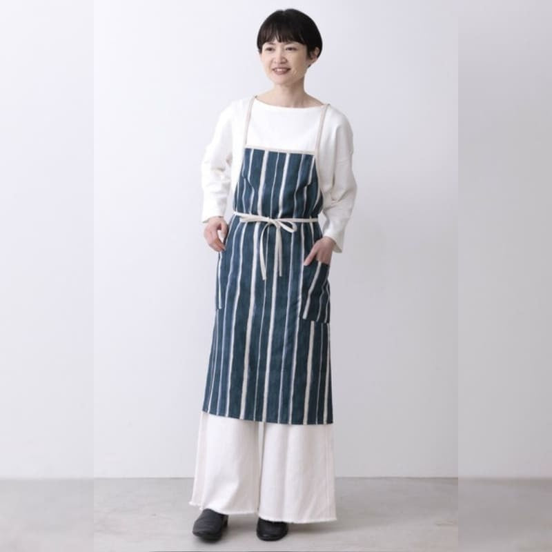 Dzięki dwóm dużym kieszeniom idealnie nadaje się do gotowania, pracy w ogrodzie lub kreatywnej pracy. Wyprodukowany w Japonii, odzwierciedla japońską wiedzę tekstylną i dodaje wyrafinowanego akcentu do codziennego życia.