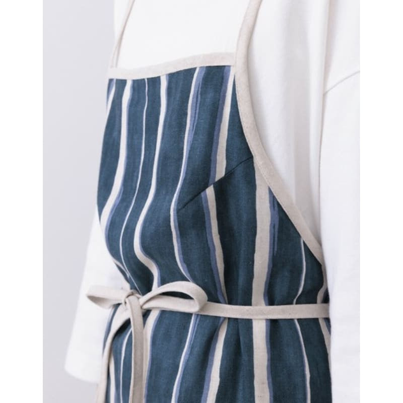 Ten japoński fartuch w paski łączy w sobie elegancję i praktyczność. Wykonany z mieszanki lnu i sztucznego jedwabiu, jest lekkim, oddychającym materiałem, który jest wygodny do noszenia na co dzień. Jego krzyżowy wzór z tyłu ułatwia zakładanie i zapewnia wygodne dopasowanie.