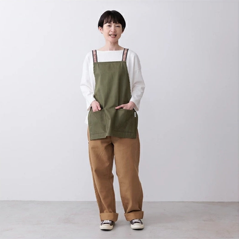 Praktyczny i elegancki, ten krótki japoński fartuch jest w pięknym kolorze khaki. Jego konstrukcja z poprzecznymi paskami sprawia, że zakłada się go szybko i łatwo, bez konieczności wiązania sznurków. Idealny do gotowania, prac w ogrodzie lub kreatywnych zajęć, zapewnia wygodę i swobodę ruchów.