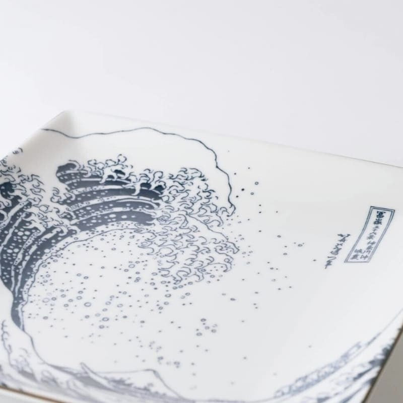 Ten kwadratowy talerz o wymiarach 20 cm przedstawia najsłynniejsze dzieło Hokusaia, Wielką falę Kanagawy, z serii Trzydziestu sześciu widoków góry Fuji. Wykonany z porcelany Mino, renomowanej japońskiej ceramiki, łączy w sobie finezję i wytrzymałość do codziennego użytku. Niezależnie od tego, czy serwujesz sushi, sałatkę, czy danie do dzielenia się, wniesie odrobinę japońskiej elegancji na Twój stół. Autentyczny egzemplarz wyprodukowany w Japonii.