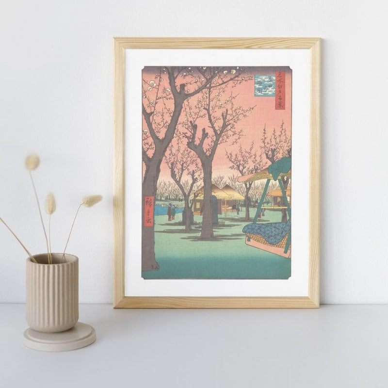 Reprodukcja japońskiej grafiki Śliwy w Kamata