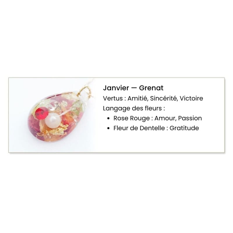 Podaruj sobie wyjątkową biżuterię przesiąkniętą symboliką z tym japońskim naszyjnikiem szczęścia. Każdy wisiorek, inspirowany kamieniem urodzeniowym związanym z każdym miesiącem roku, zawiera fragment natury: starannie wyselekcjonowane suszone kwiaty i kolorowe cyrkonie symbolizujące kamień, a wszystko to zamknięte w przezroczystej żywicy.