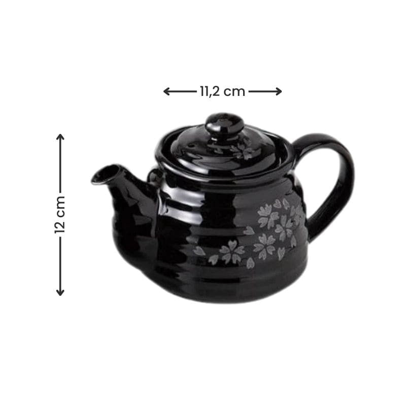 Elegancki i kompletny japoński zestaw do herbaty zawiera czajniczek i pięć filiżanek do herbaty sencha. Jego błyszcząca czarna emalia ozdobiona jest kwiatem wiśni i srebrnymi akcentami. Zafunduj sobie chwilę relaksu z przyjaciółmi, serwując im pyszną japońską herbatę w tej pięknej zastawie stołowej prosto z Japonii!