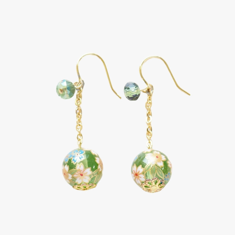 Wiszące kolczyki z japońskim motywem kwiatowym