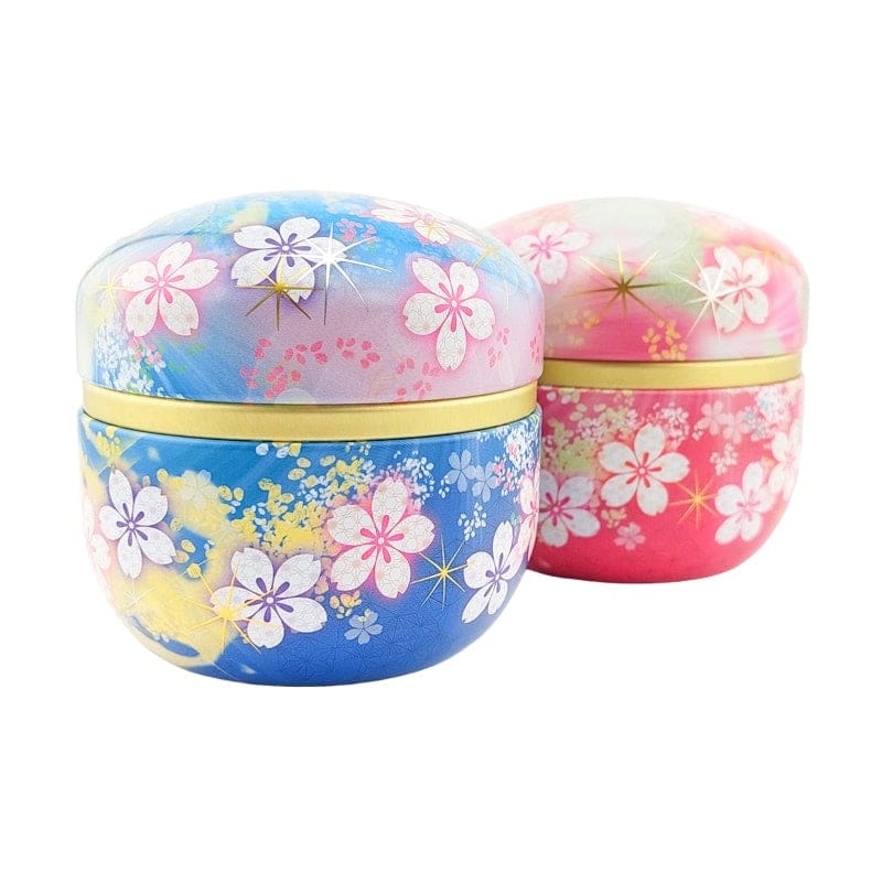 Niebieski metalowy pojemnik na herbatę w japońskie kwiaty