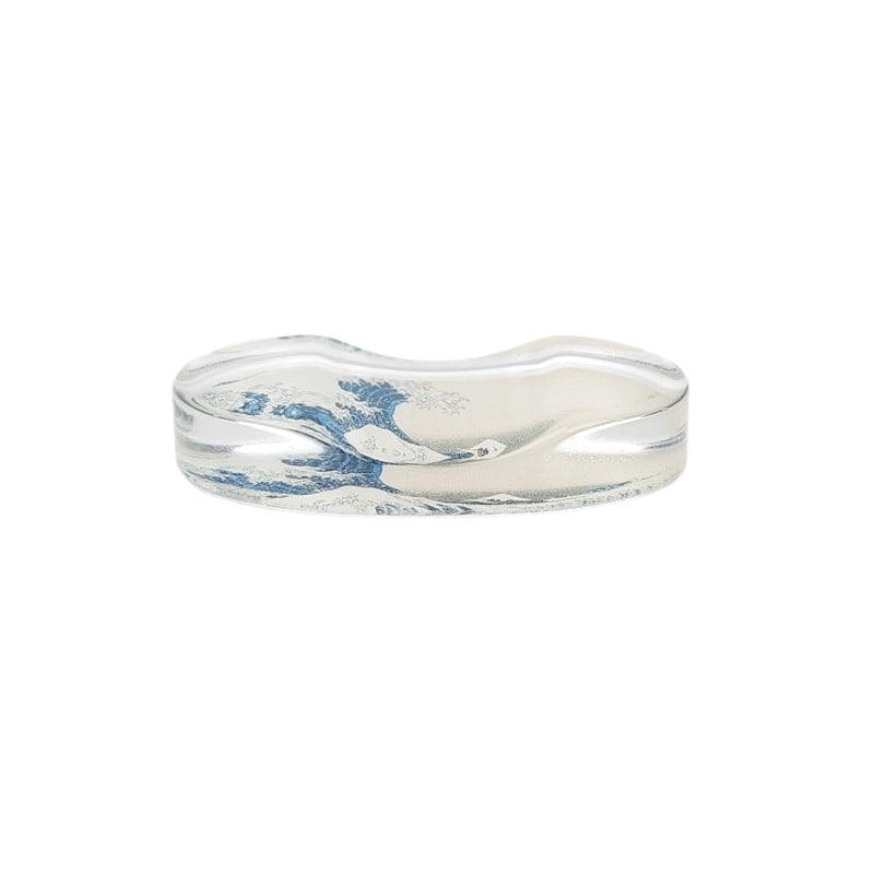 Wykonana z przezroczystej żywicy akrylowej, ta podstawka pod pałeczki łączy w sobie lekkość i wytrzymałość, jednocześnie podkreślając wyrafinowany design słynnej fali. Idealny jako uzupełnienie japońskiego serwisu obiadowego lub jako oryginalny prezent dla miłośnika japońskiej sztuki.