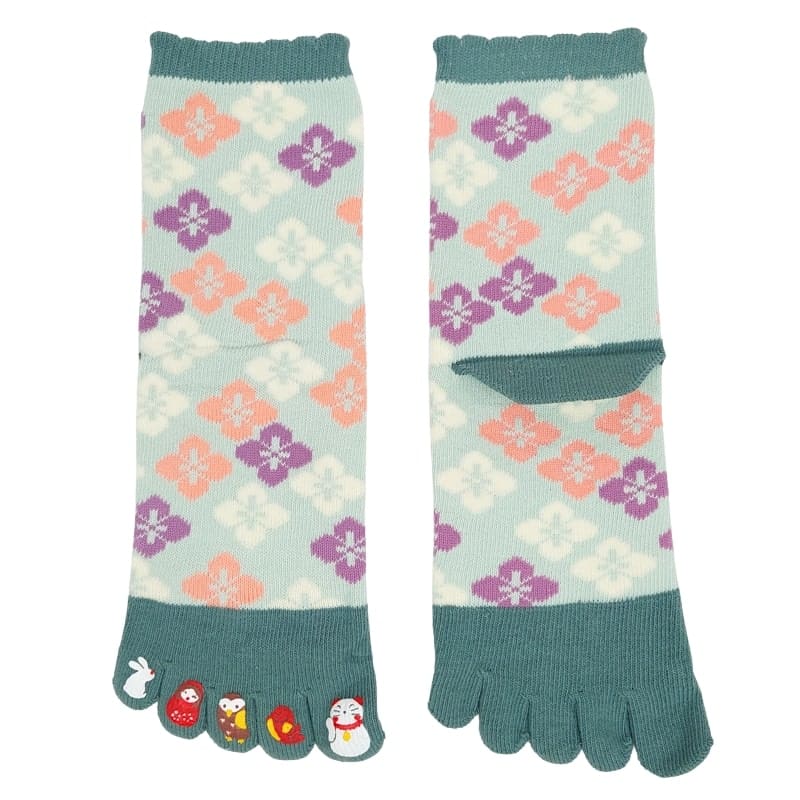 Pokochasz te pięciopalczaste skarpetki Hanabishi! Pomiędzy tradycyjnymi japońskimi kwiatami i małymi szczęśliwymi znakami umieszczonymi na końcu każdego palca (maneki-neko, daruma, sowa...), nie ma nic bardziej uroczego. Te skarpetki nie tylko ładnie wyglądają: wentylują stopy, ograniczają wilgoć między palcami i pomagają poprawić postawę. Lekki styl i dobre samopoczucie.